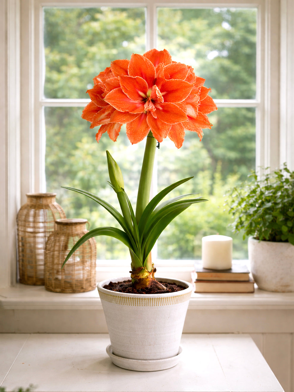 Plantez le bulbe en laissant la partie supérieure visible, dans un endroit lumineux et chaud. Arrosez modérément après le démarrage. La floraison intervient généralement après 8 à 10 semaines. Le feuillage peut être conservé après floraison.