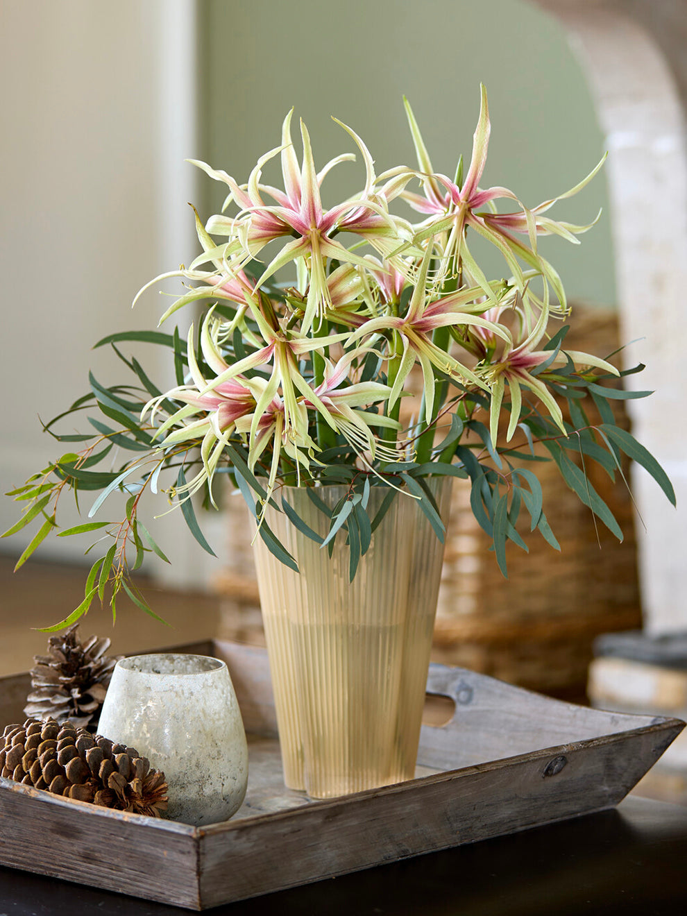 Amaryllis Tarantula est une amaryllis araignée exotique à l’allure légère et raffinée. Ses fleurs s’ouvrent largement et dévoilent de longs pétales étroits qui s’élancent avec élégance, créant une silhouette étoilée et aérienne. Cette forme originale apporte une touche contemporaine et botanique à la floraison.