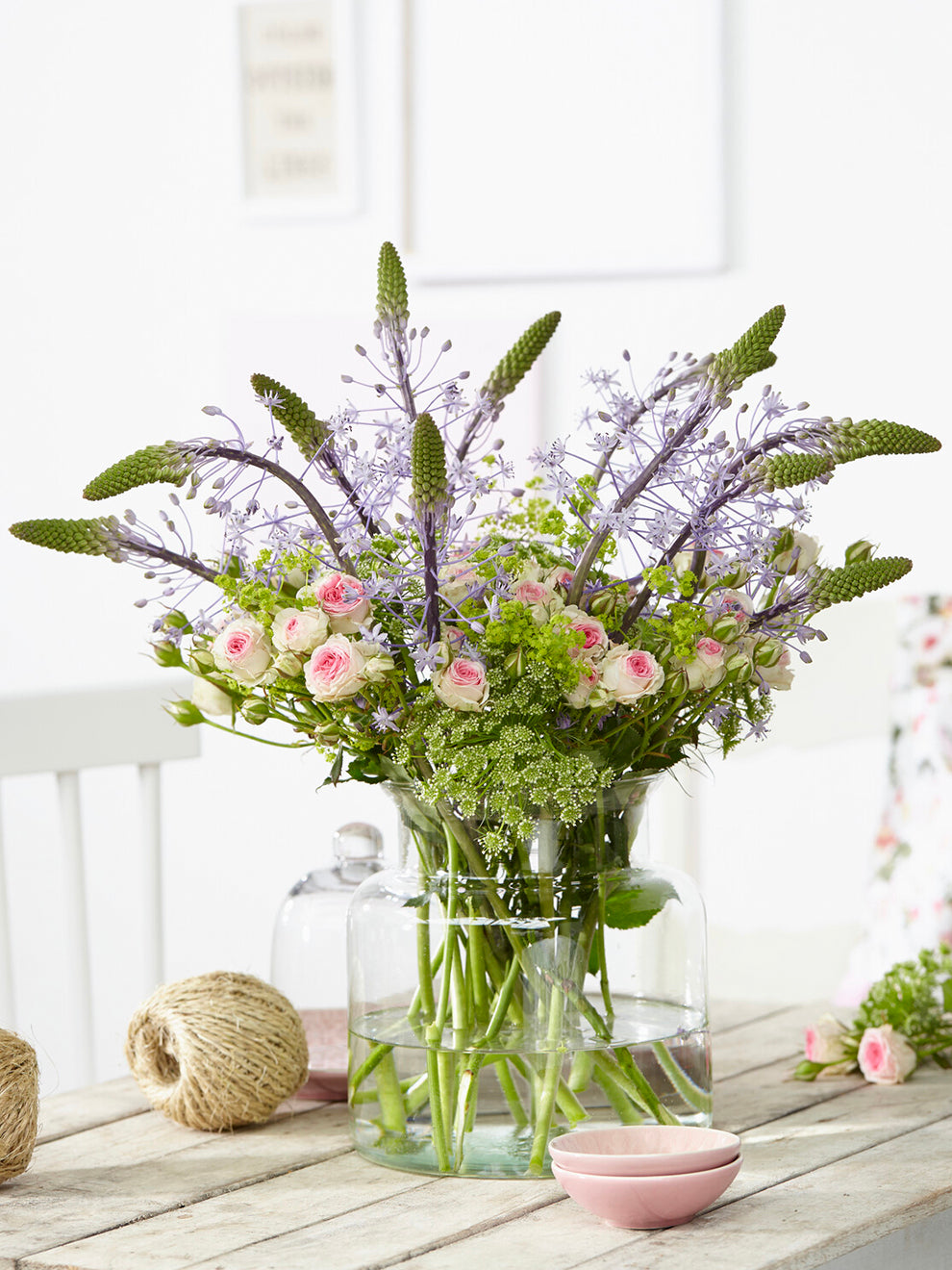 Cette variété est particulièrement spectaculaire lorsqu’elle est plantée en groupes, où sa silhouette verticale apporte de la structure parmi les tulipes, les alliums et les jeunes vivaces. Elle se prête également très bien à la naturalisation dans les bordures ensoleillées, les plantations de type prairie et les jardins au style naturel, où elle revient fidèlement chaque année. Facile à cultiver et pleine de charme, ‘Blue Arrow’ offre une présence douce et raffinée à la transition entre le printemps et le début de l’été.