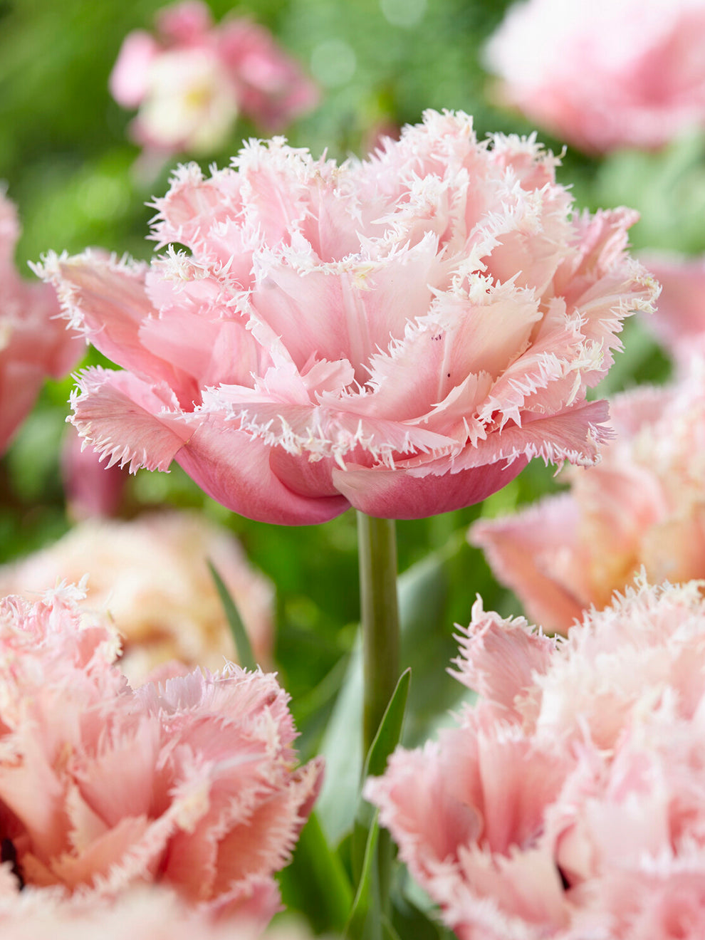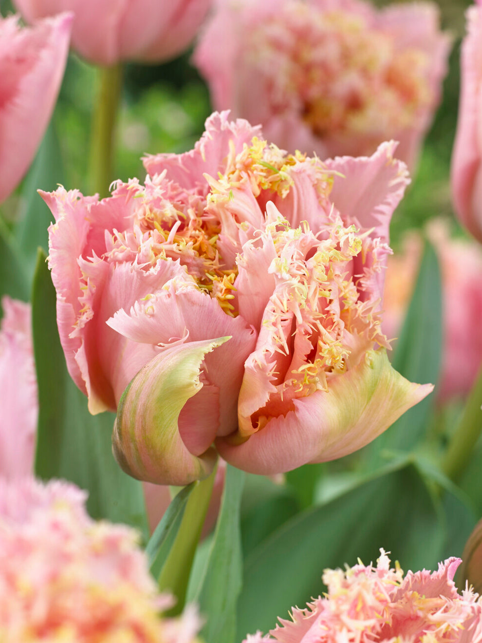 La Tulipe Pink Magic est une tulipe double frangée aux fleurs généreuses rappelant une pivoine. Les pétales nombreux s’ouvrent progressivement et se terminent par une fine frange délicate qui capte la lumière.